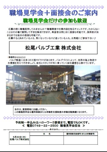 応募前に職場環境や仕事内容を知るチャンスです! ハローワーク彦根で実施される、求人募集をしている事業所の職場見学会をご紹介!