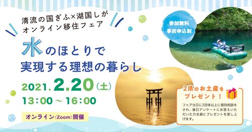 2021年2月20日(土)13時00分~16時00分|ぎふ×しが オンライン移住フェア|2県の市町村など26団体が集合・気になる団体へのオンライン個別相談ができる・先輩移住者の声が聴けるセミナー開催